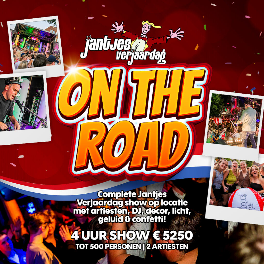 Complete Jantjes Verjaardag show op locatie met artiesten, DJ, decor, licht, geluid en confetti